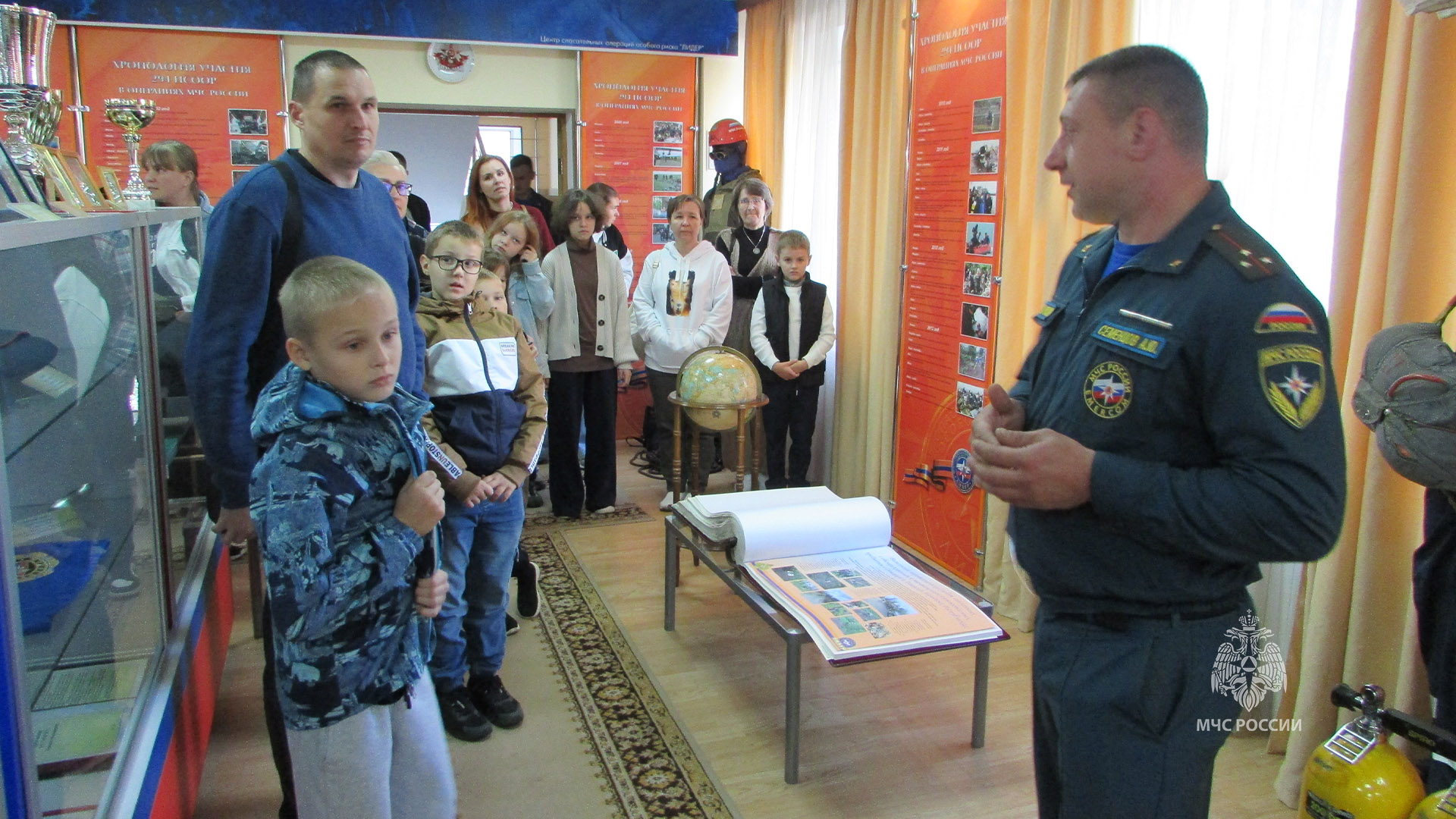 20 сентября для детей участников СВО была проведена экскурсия по территории Центра «Лидер». Гости посетили КДЦ, где в музее им было подробно рассказано о истории создания Центра и показан презентационный видеоролик.