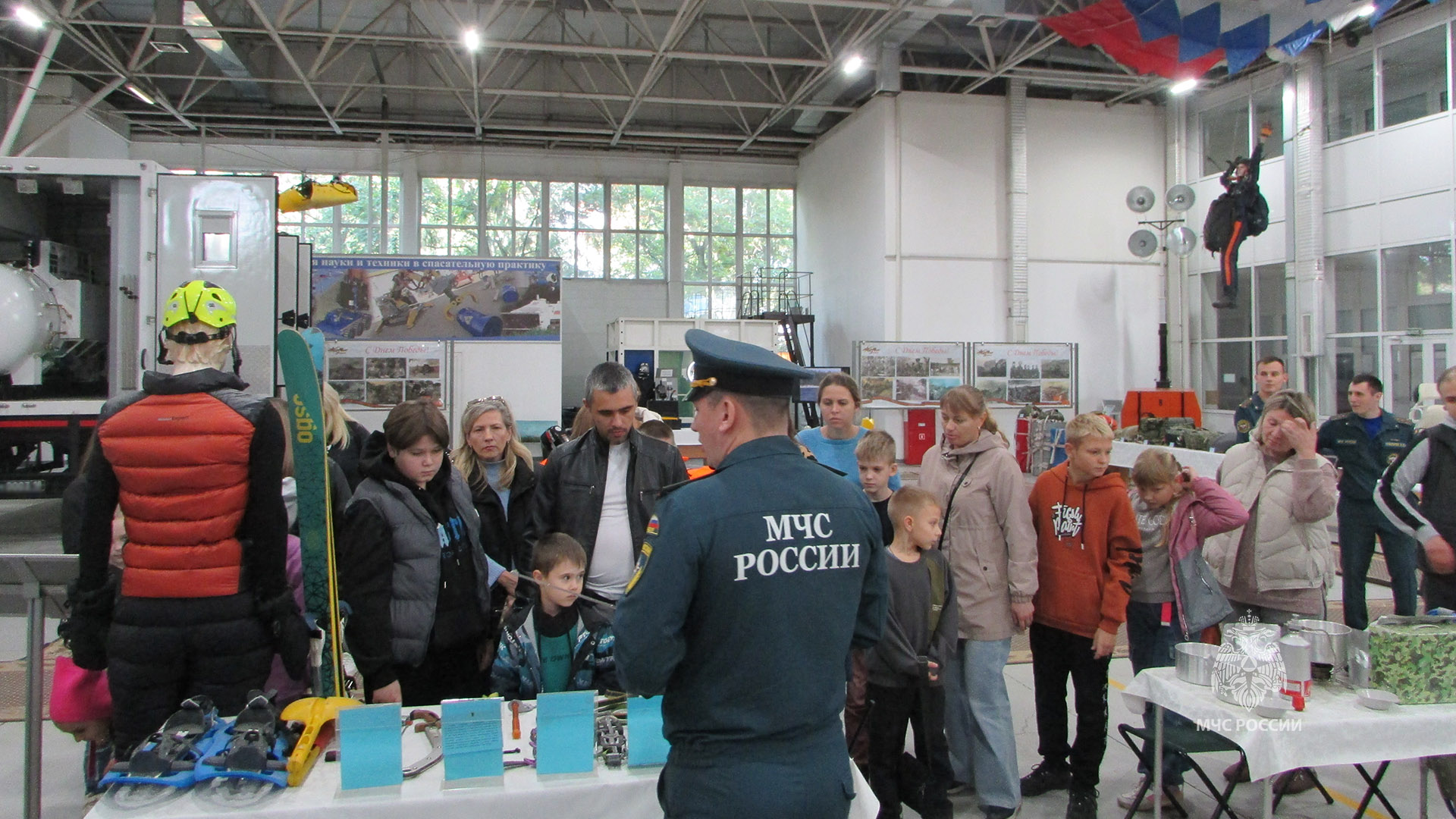 В РТК для гостей организовали выставку, на которой представили снаряжение специалистов Центра различных направлений: десантников, беспилотные летательные аппараты, робототехнические средства, провели ознакомление с образцами оборудования пиротехнического управления, продемонстрировано водолазное снаряжение, оборудование и имущество управления радиационной, химической и биологической защиты и многое другое.