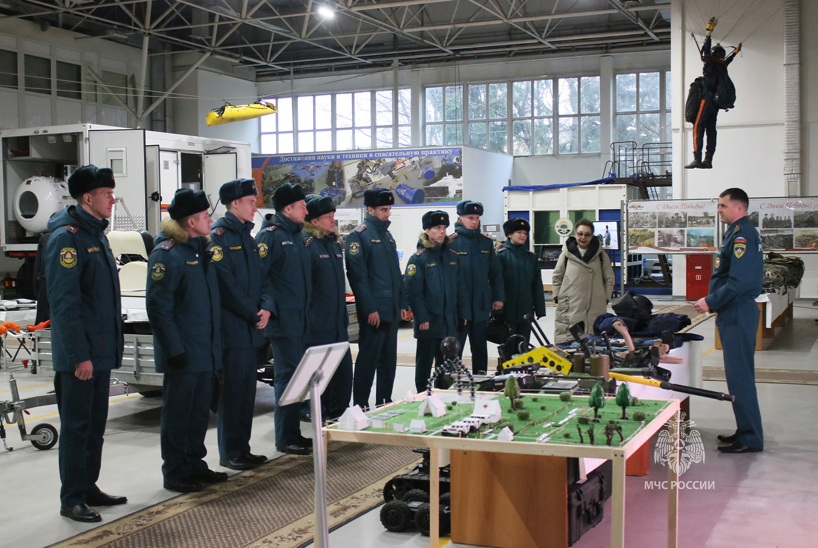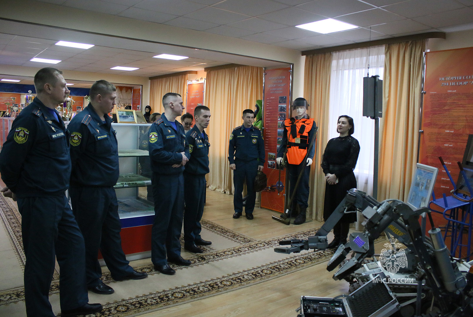 В ходе занятия гости посетили музей и посмотрели ознакомительный видеоролик о Центре. В РТК было продемонстрировано снаряжение десантников, беспилотные летательные аппараты, образцы оборудования пиротехнического управления, водолазного снаряжения, оборудование и имущество управления радиационной, химической и биологической защиты и многое другое.